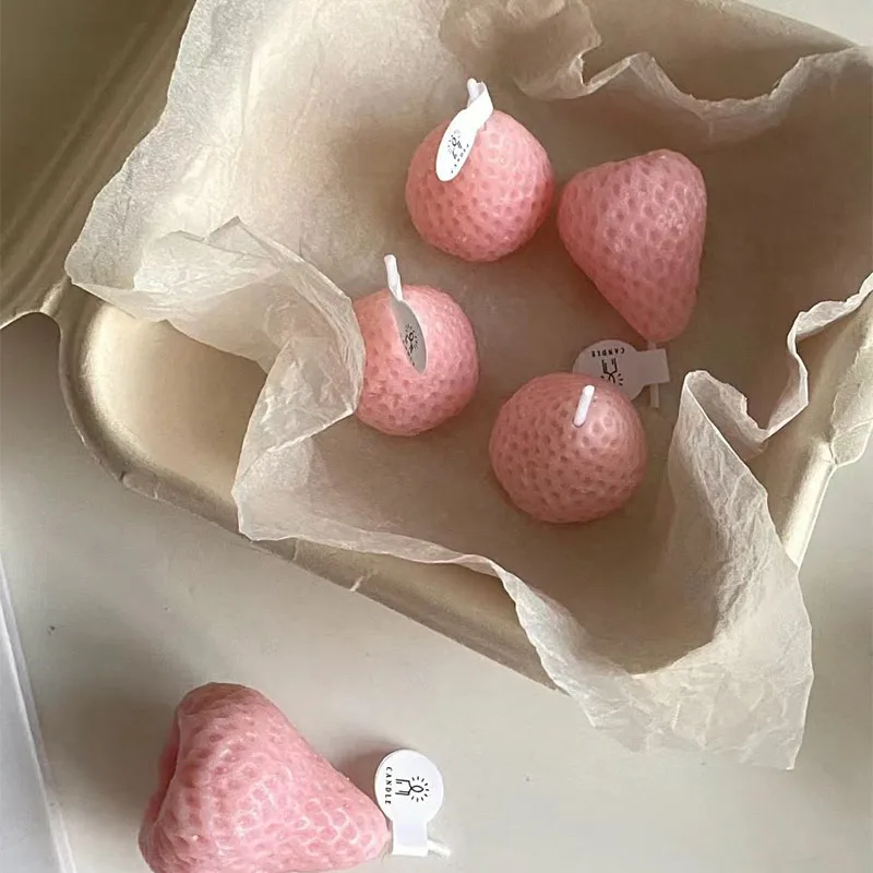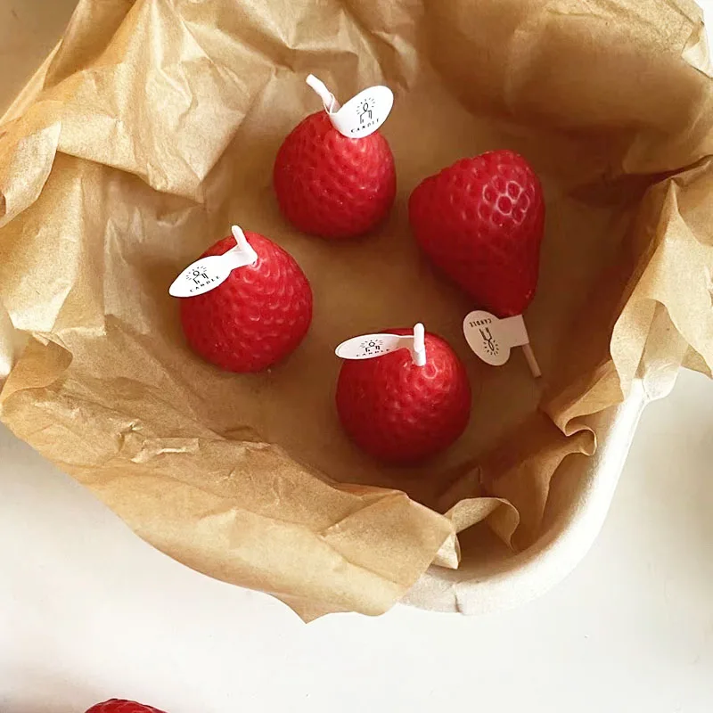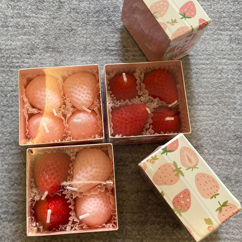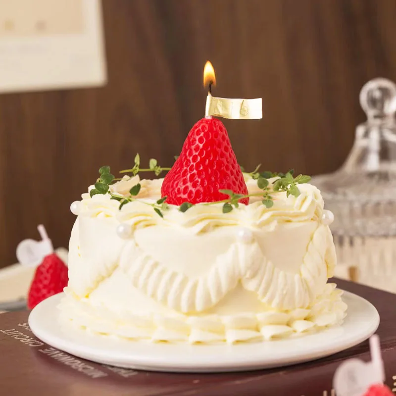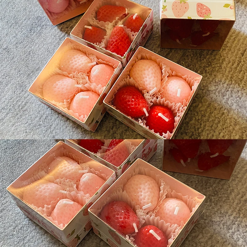 4pcs/1pc Strawberry Candles Soy Wax Aromatherapy Scented Fruit Candles Birthday Cake Topper Party Home Decoration Room Accessory