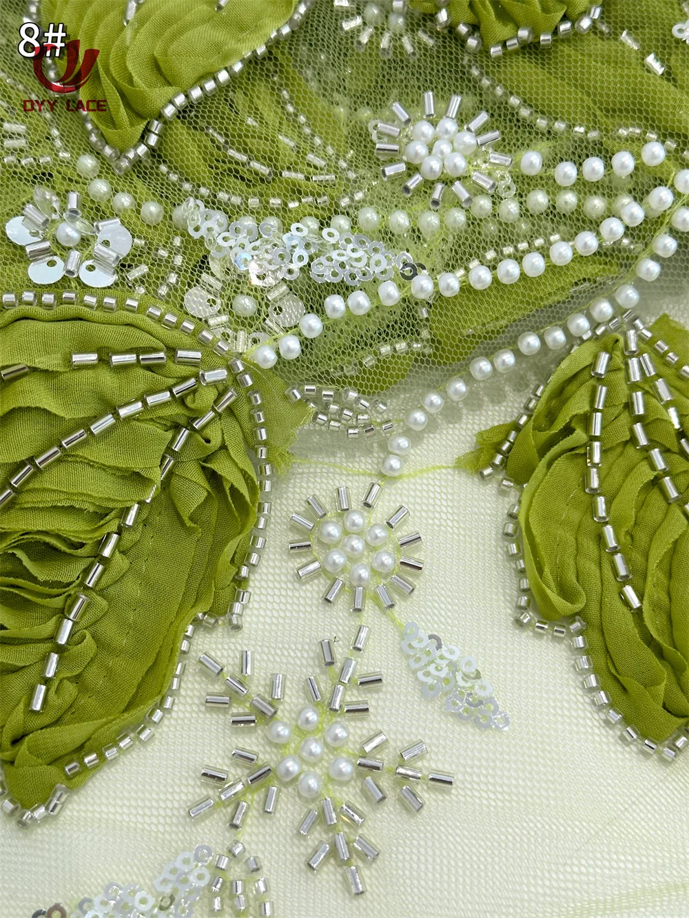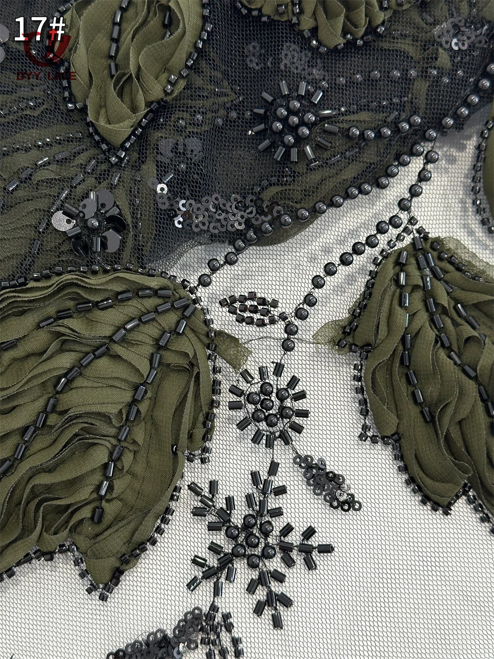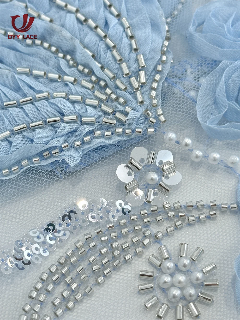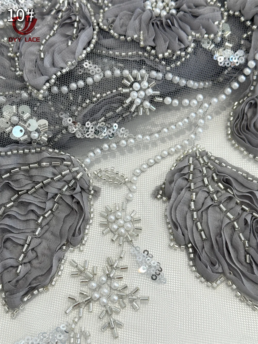 ①Product Type: 5 Yards Delicate Embroidery French Tulle Lace Fabric with Rhinestones
