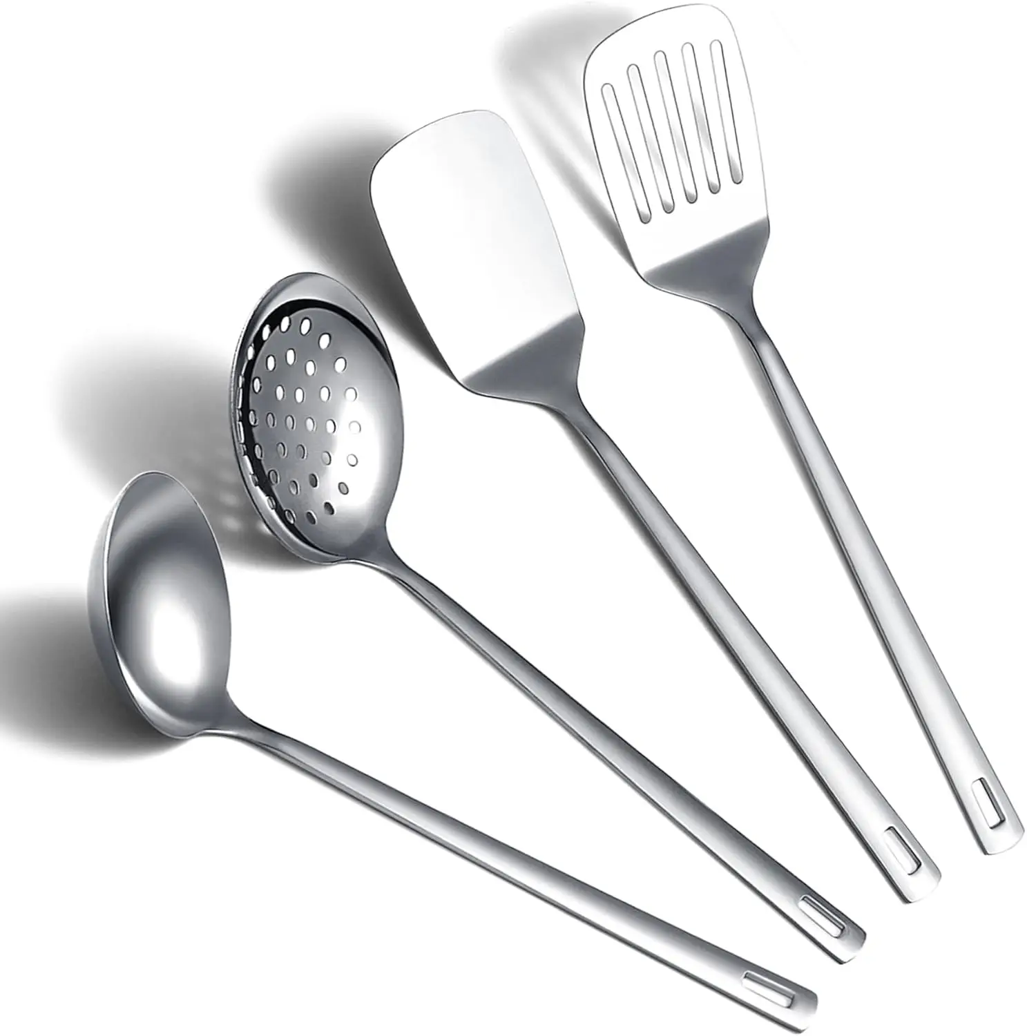 - 6pcs Stainless Steel Kitchenware Set Public Spoon Spatula Soup Spoon Colander Large Spoon Suitable for Restaurants and Families