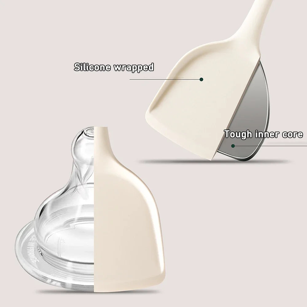 - 7Pcs Beige White Silicone Kitchenware Cooking Utensils Heat-resistant Spatula Turner Pasta Colander Shovel Kitchen Accessories