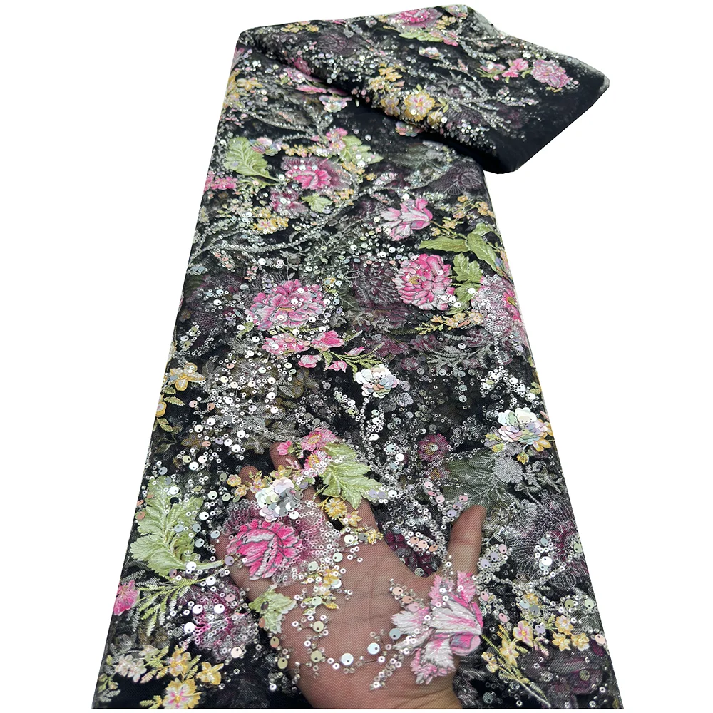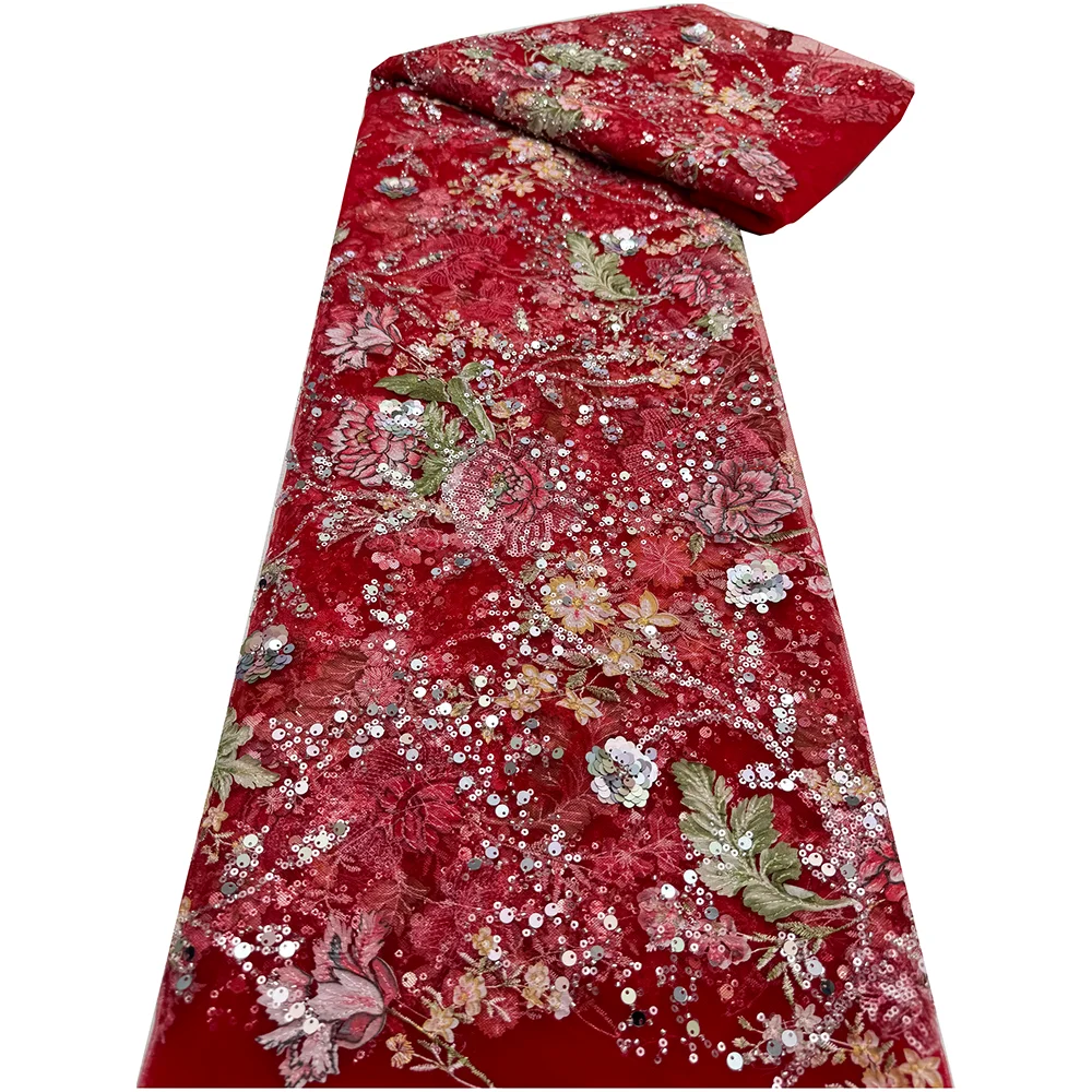 - African Lace Fabric 2025 Sequins Beaded Embroidery Groom Nigerian Bridal High Quality French Tulle Lace Fabric For Wedding