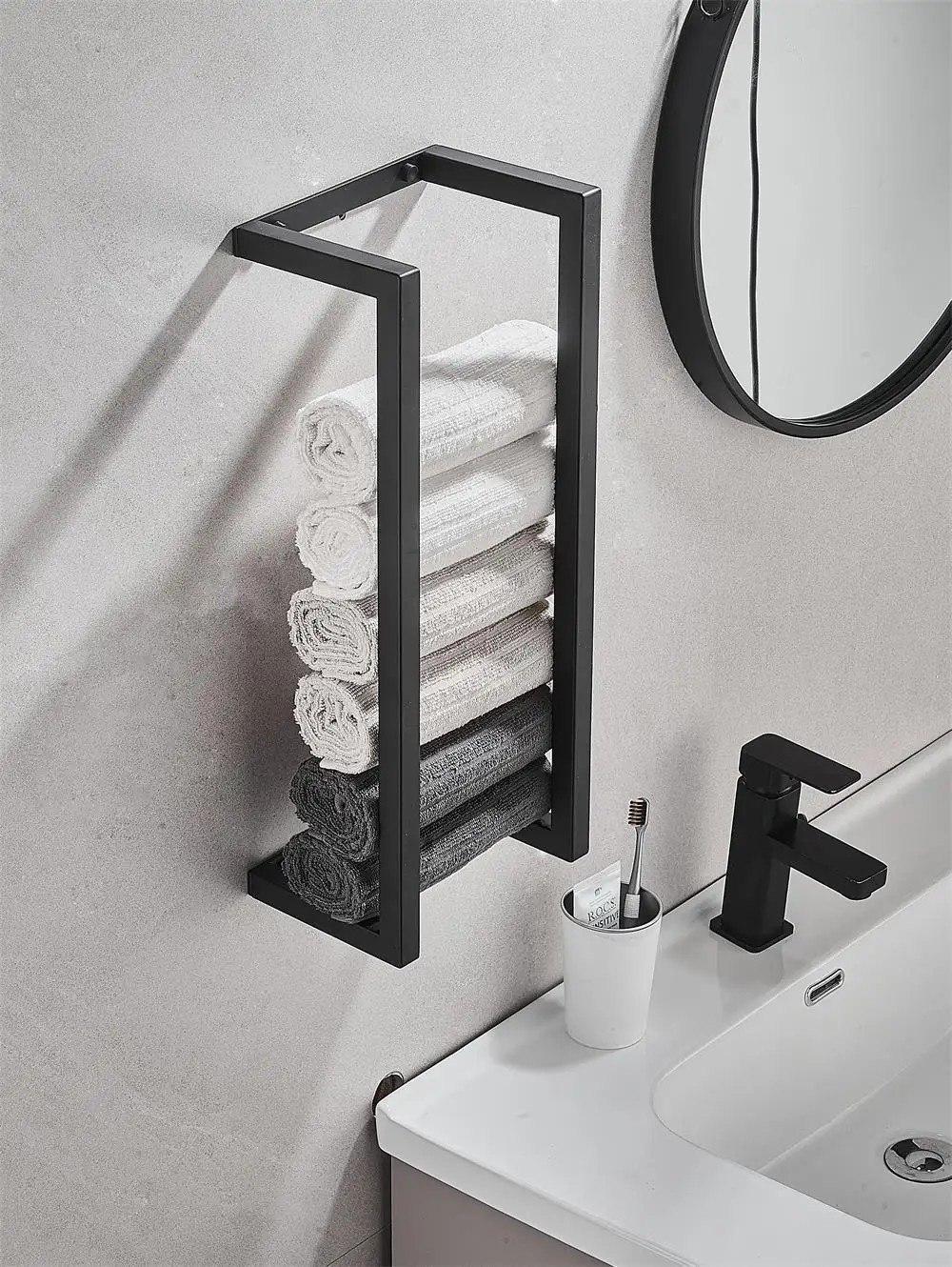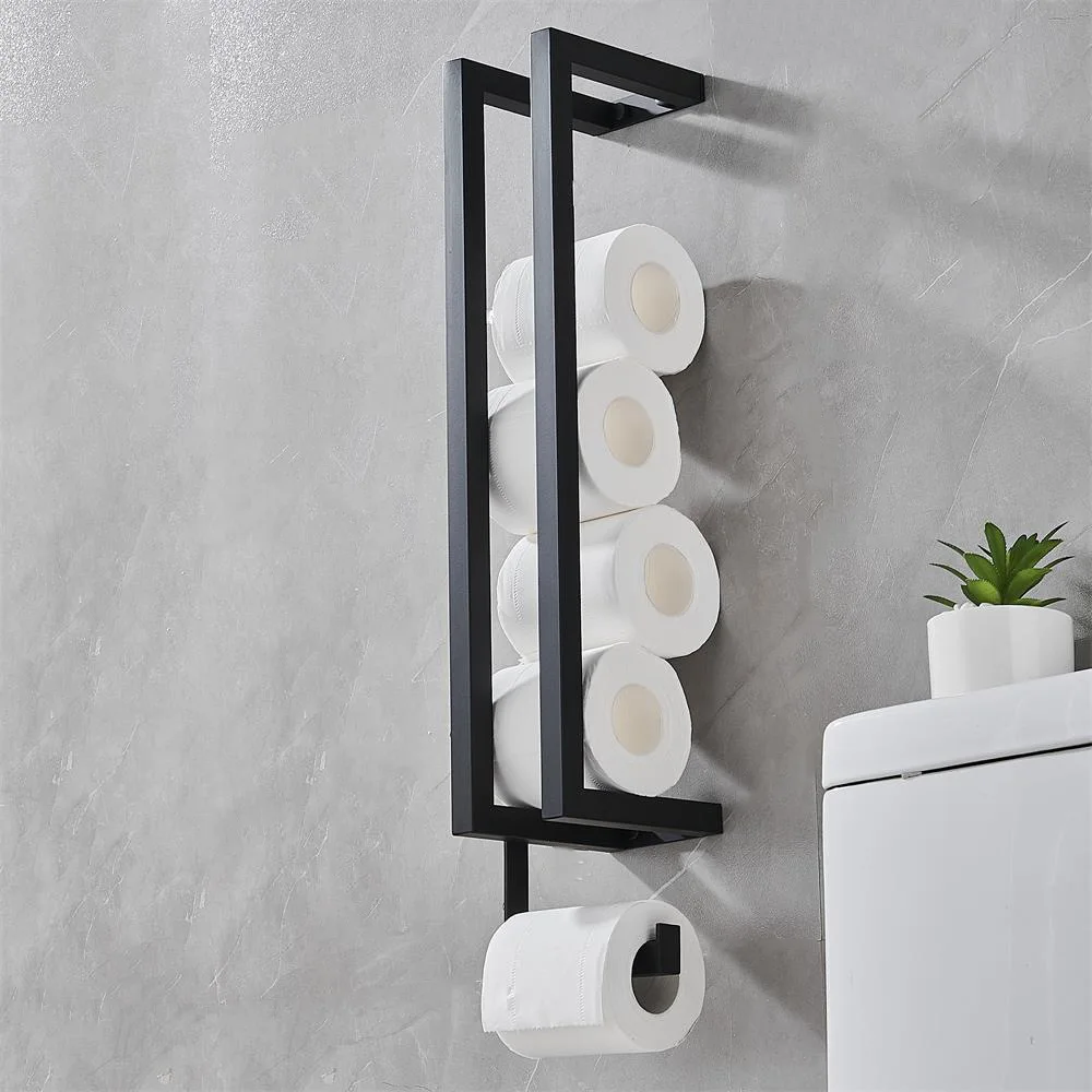 - Black Dual Use Stainless Steel Wall-mounted Bathroom Shelf Hotel Bathroom Towel Roll Paper Rack Towel Rack Toilet Paper Holder