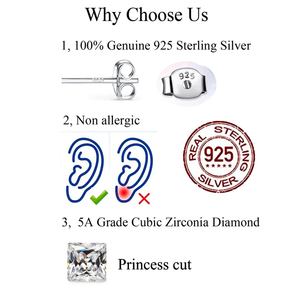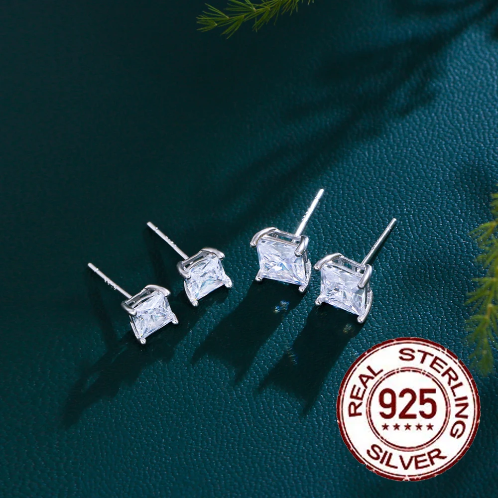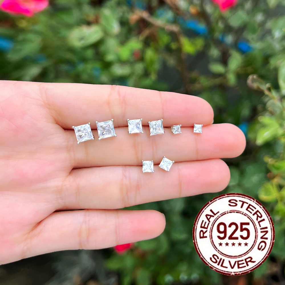 Item name: CWWZircons New Sterling Silver 925 CZ Stud Earrings Screw Back 3/4/5/6mm Square Cubic Zirconia Jewelry Gifts for Women Man SE025