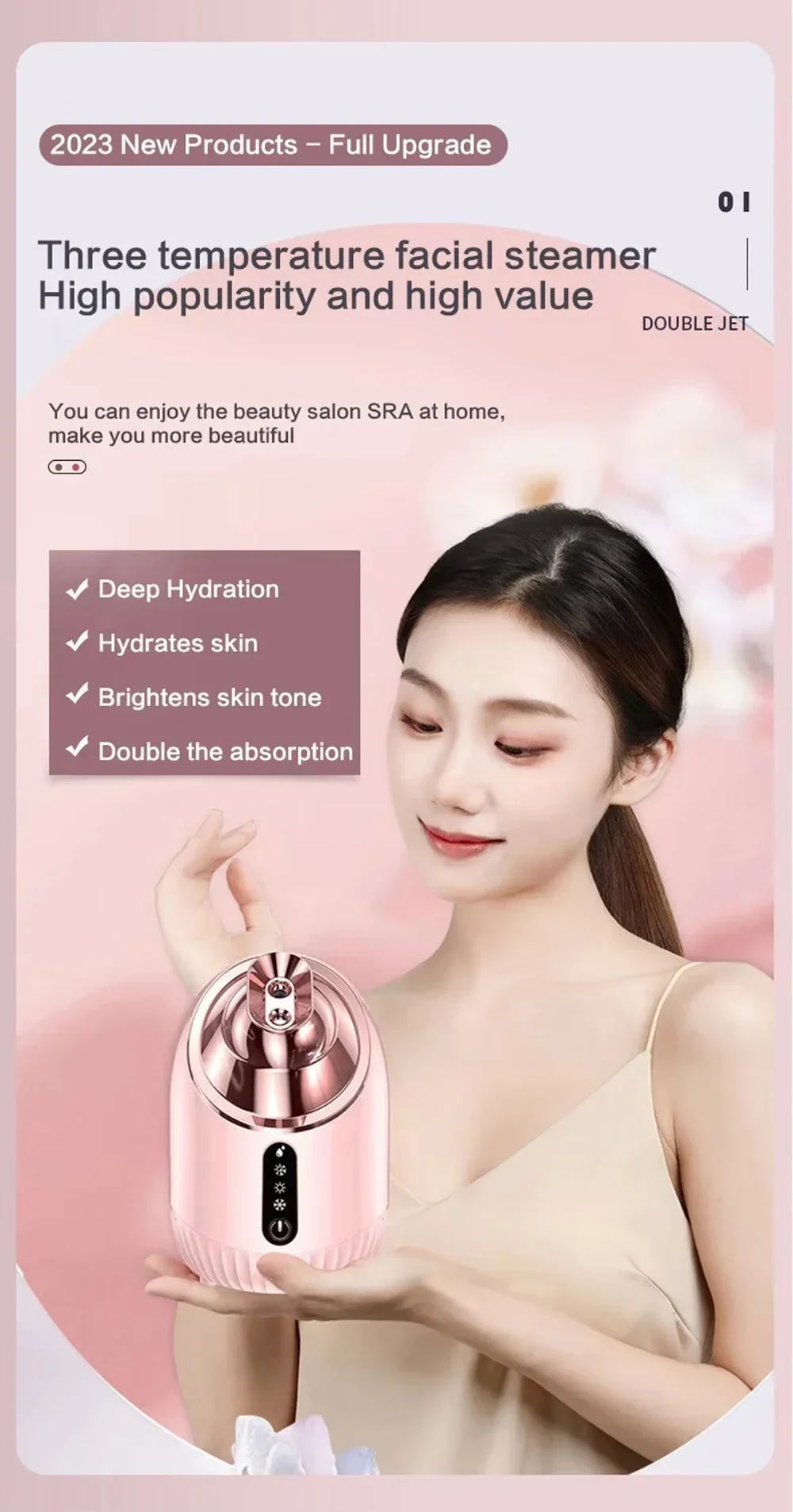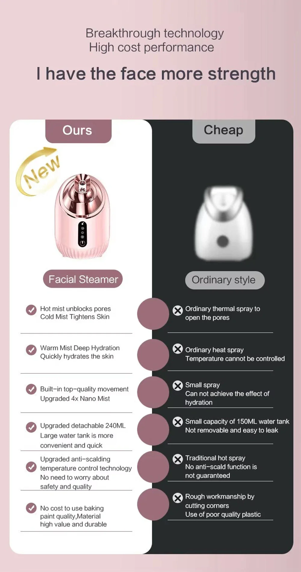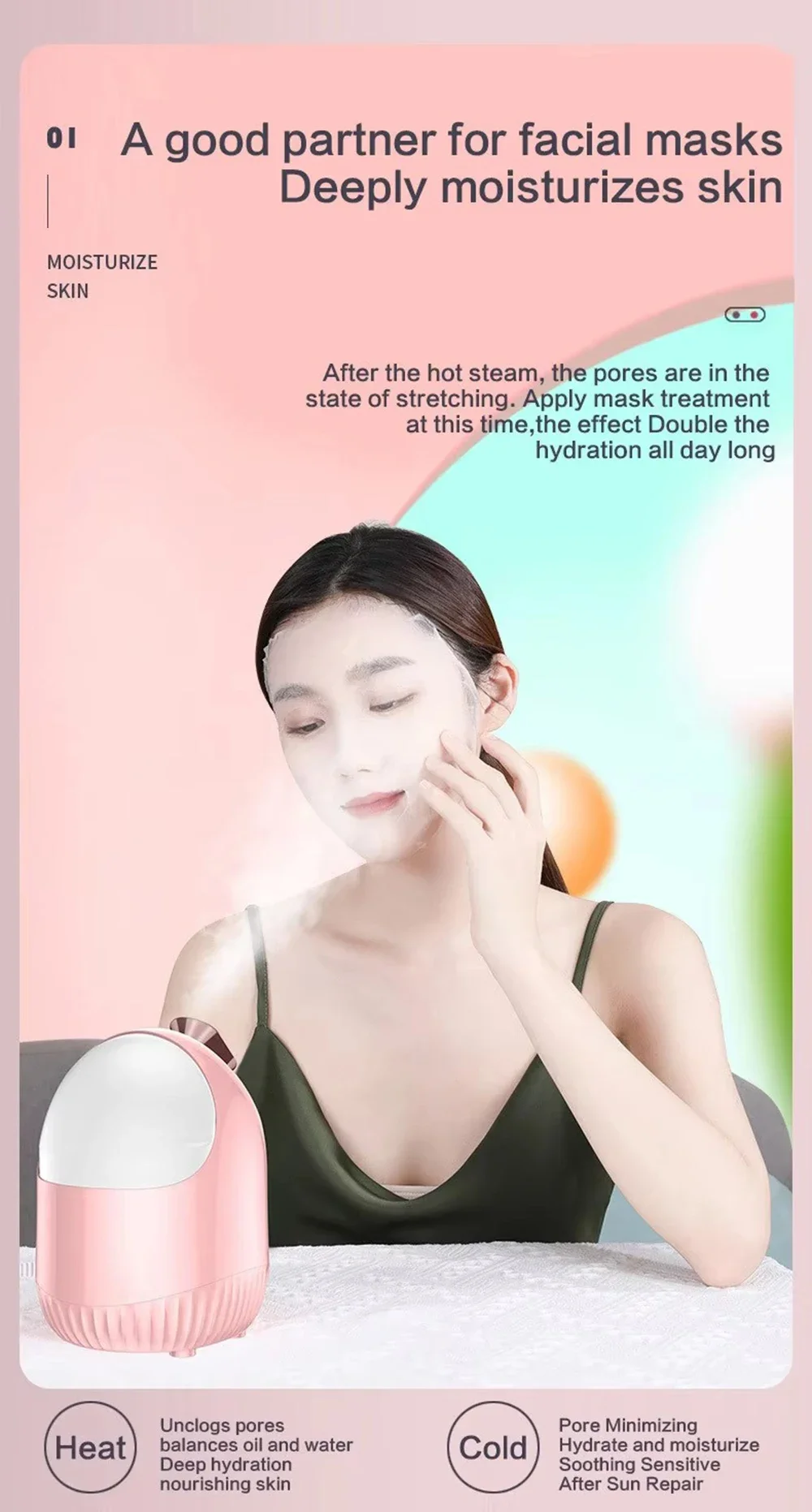 1. Cold & hot & warm 3 temperature mode:Our machines offer 3 modes of cold mist, hot steam and warm steam so you can experience beauty treatments at home. With the combination of warm/hot steam and cold mist, you can achieve skin and pore tightening results. Warm steam opens pores, moisturizes and cleanses the skin, making it an easy way to experience a facial spa at home.