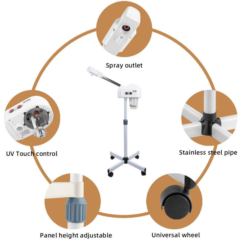 PORTABLE FACIAL STEAMER - The ozone facial mister makes it the perfect steam machine to have at home and in businesses like spas and salons. Unlike the bulky ones, this portable mister can be easily moved from one place to another thanks to its smooth-rolling 360° swivel casters. The easy to assemble steamer also features quiet operation for that maximum relaxation effect.