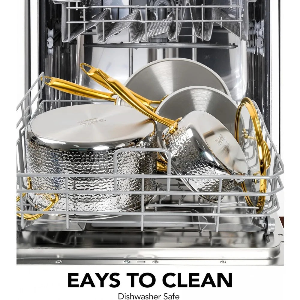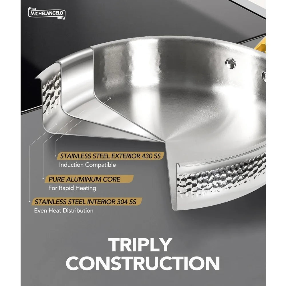 MICHELANGELO Hammered Stainless Steel Pot Set with Gold Handle Cookware Set, Premium Induction Kitchen Cookware, Oven Safe