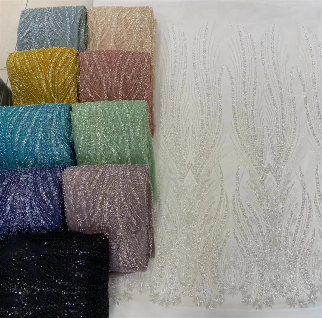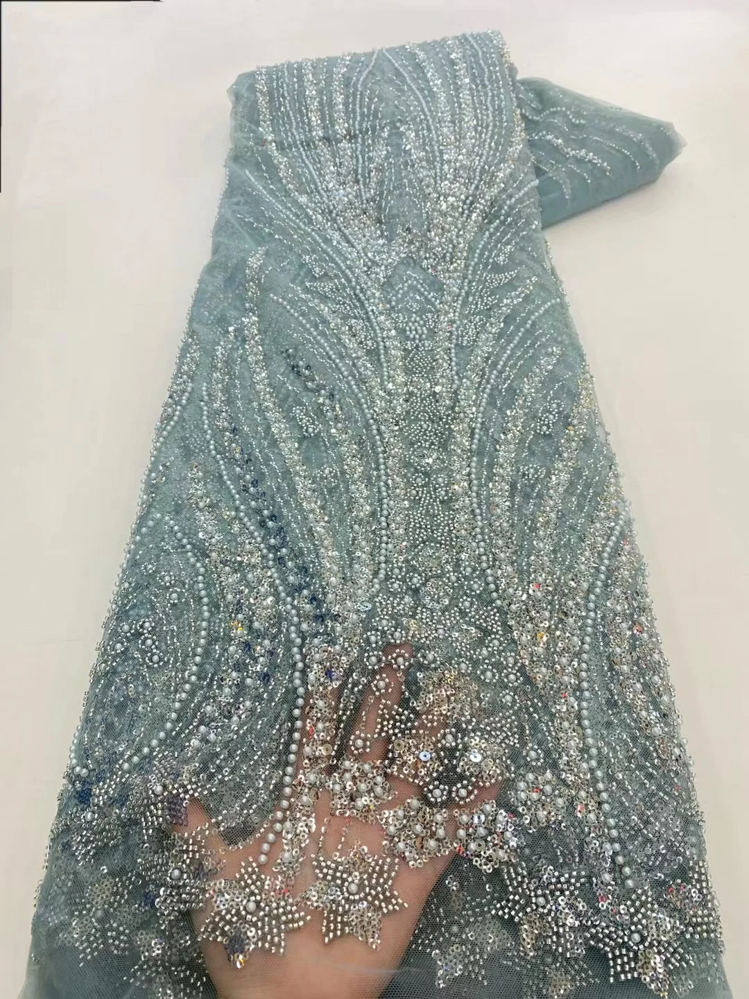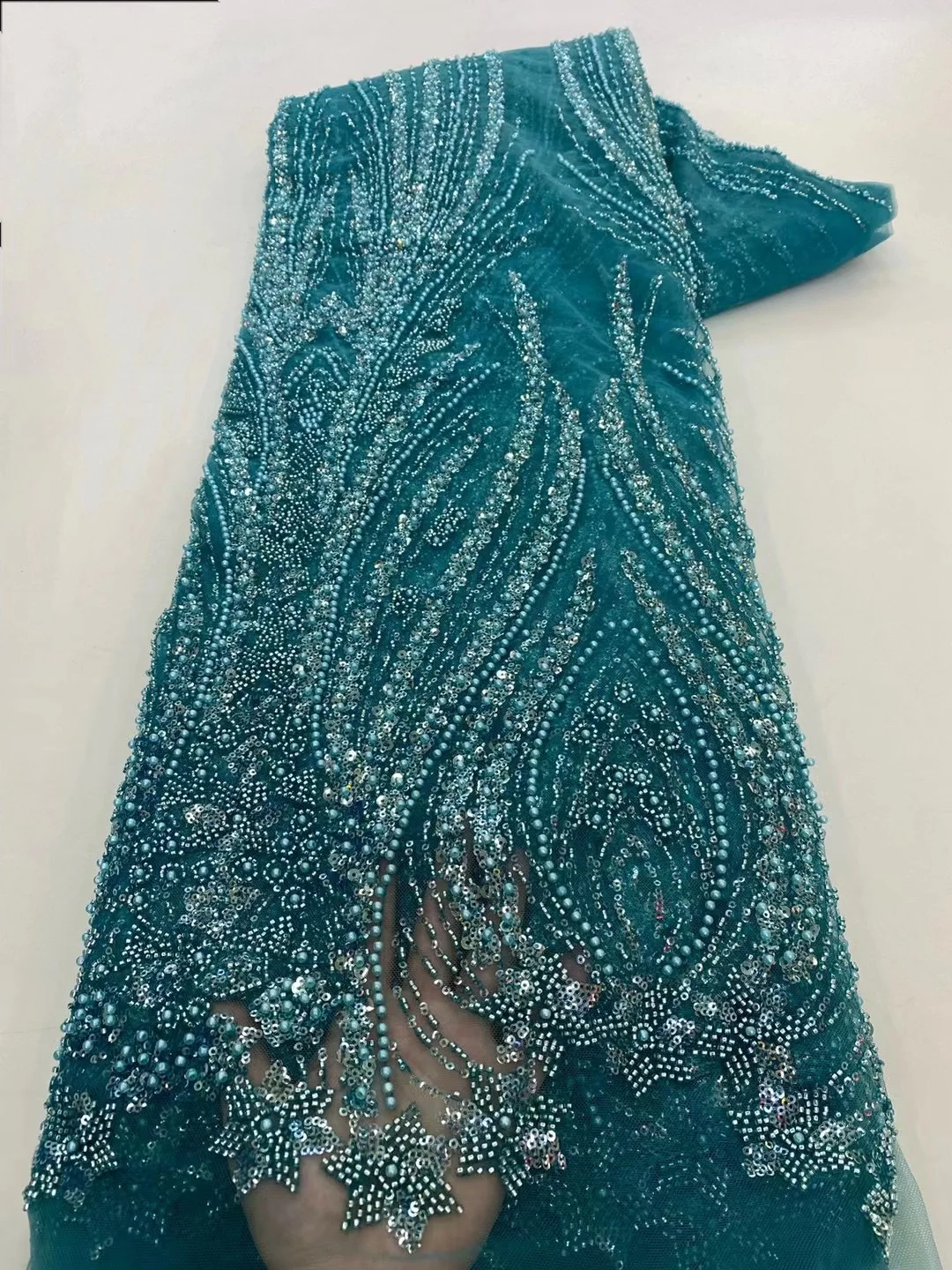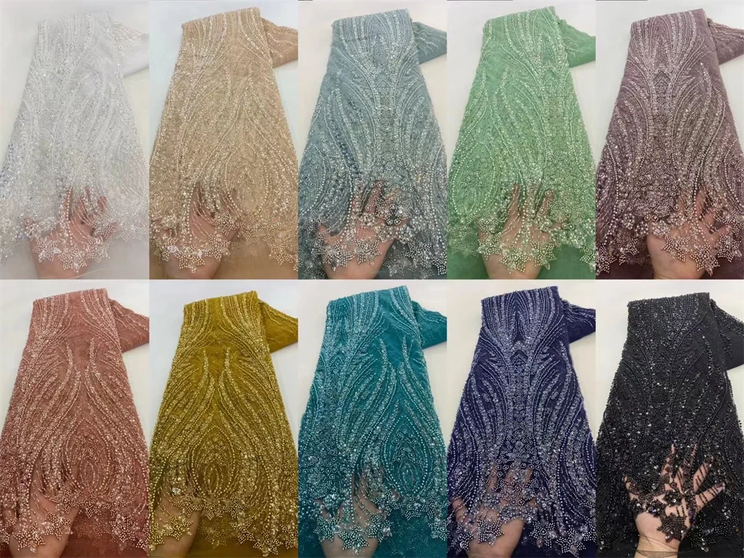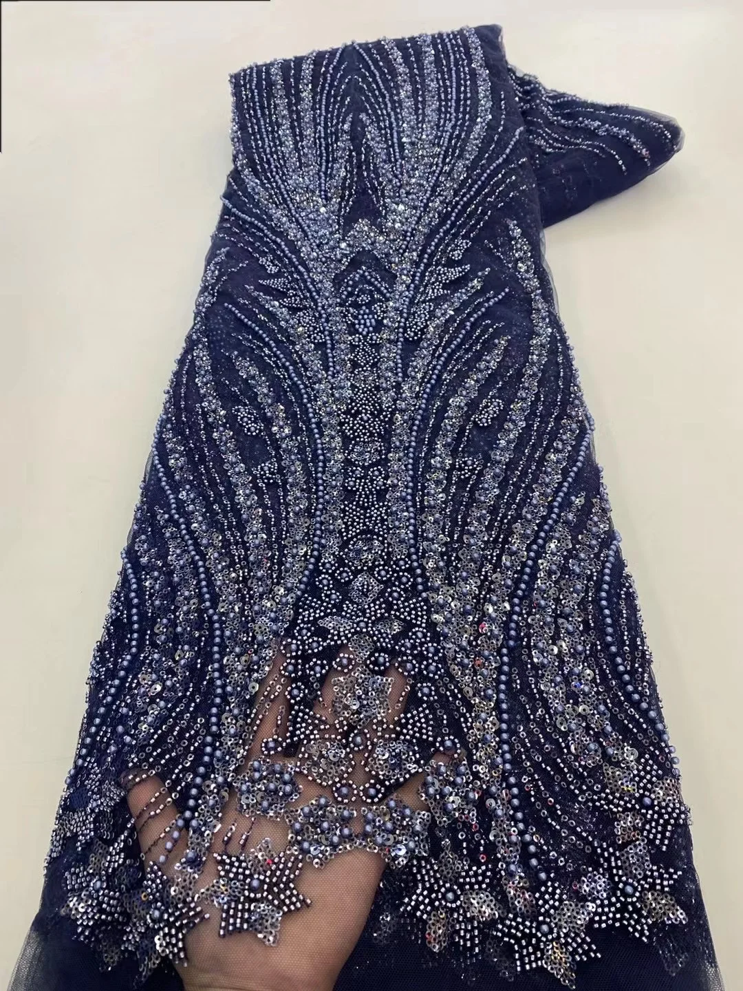 Nav Blue Sequin Luxury Beads Lace African 2025 High Quality 5 Yards Handmade Sequins Fabric Nigeria For Evening Party Wedding