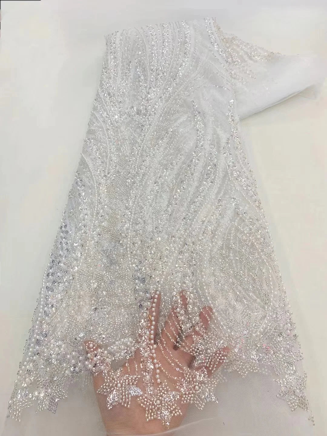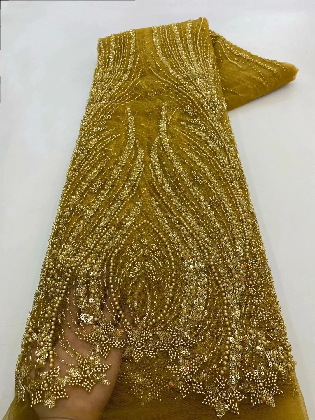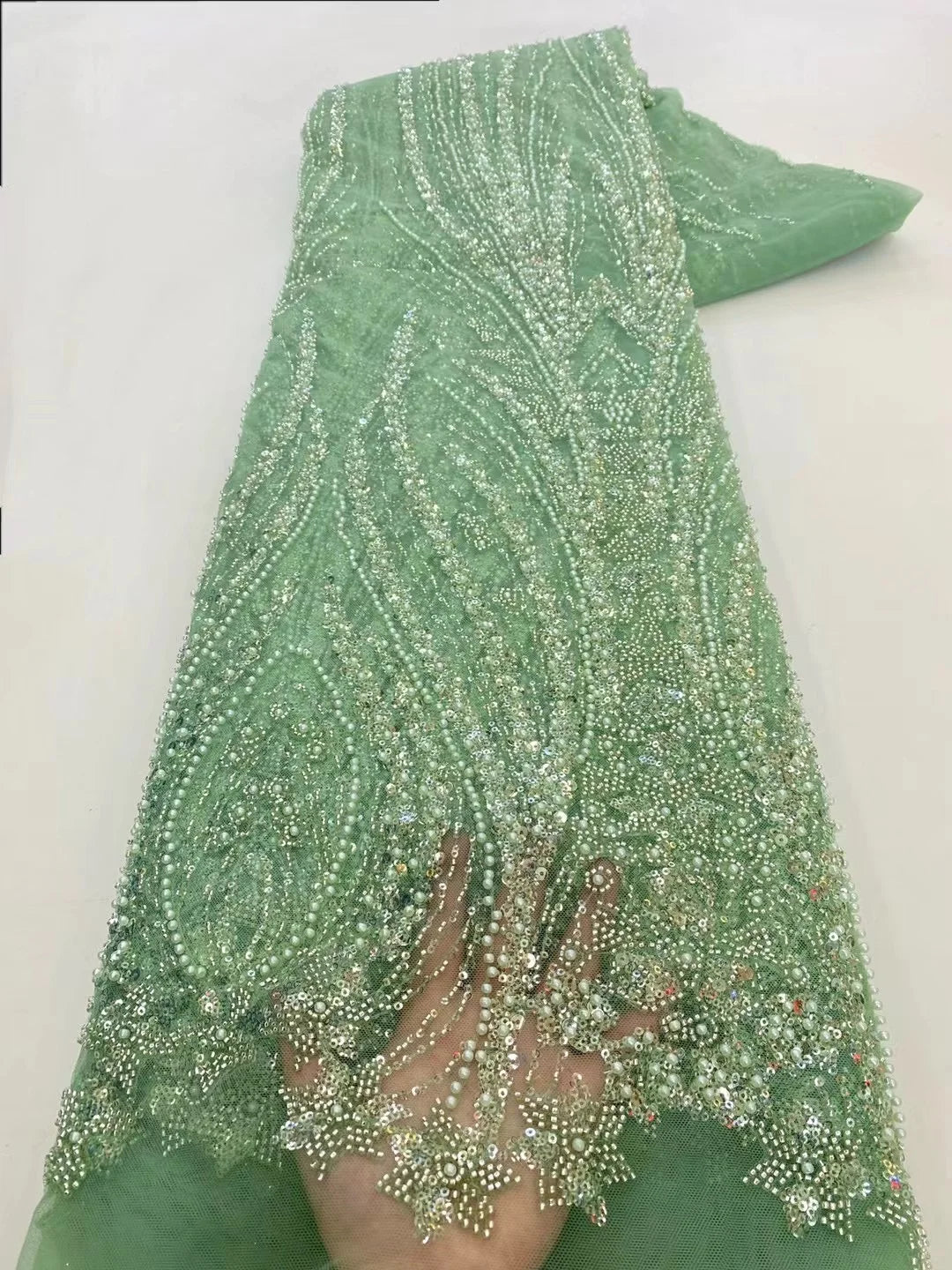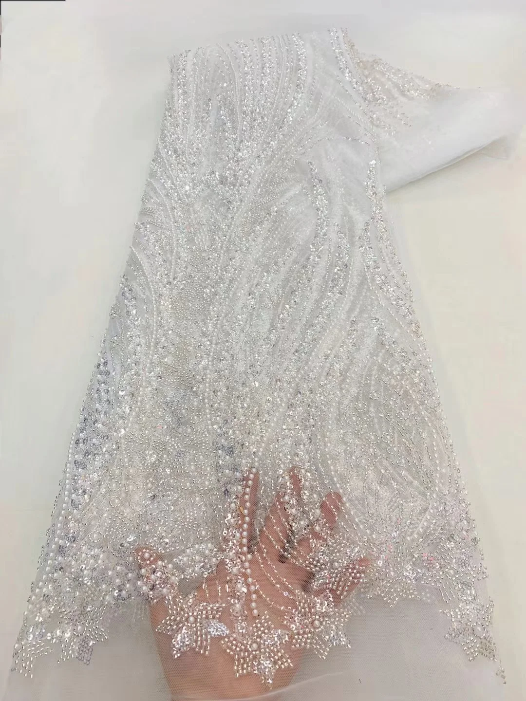 Nav Blue Sequin Luxury Beads Lace African 2025 High Quality 5 Yards Handmade Sequins Fabric Nigeria For Evening Party Wedding