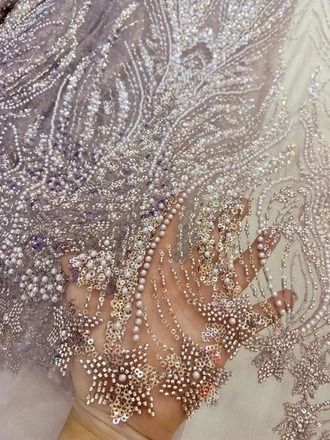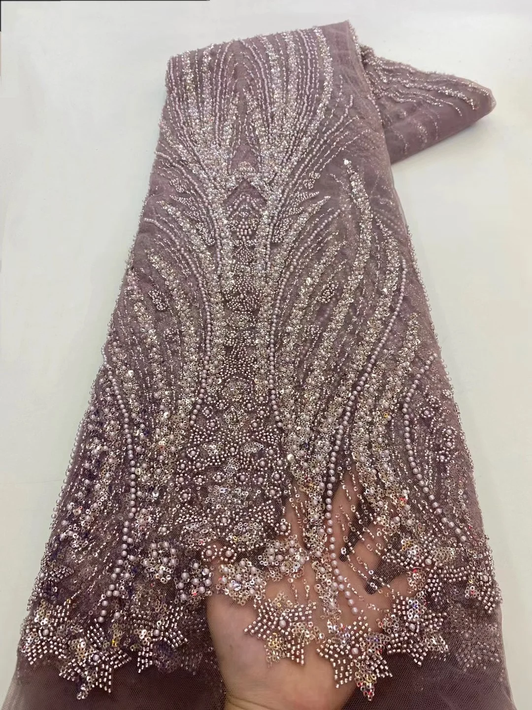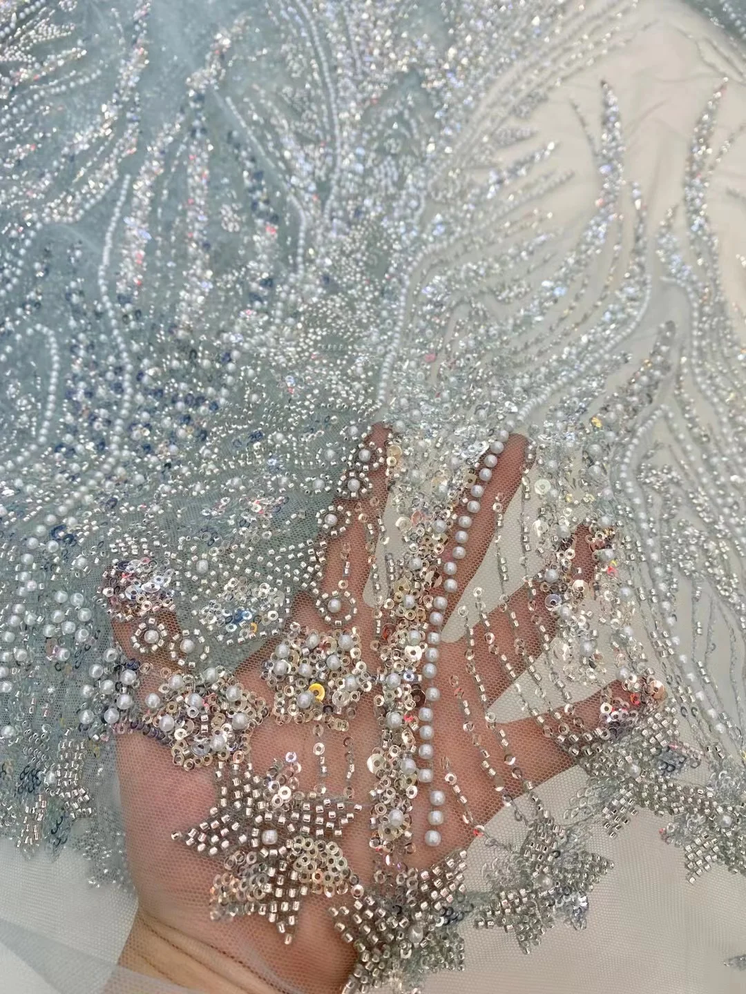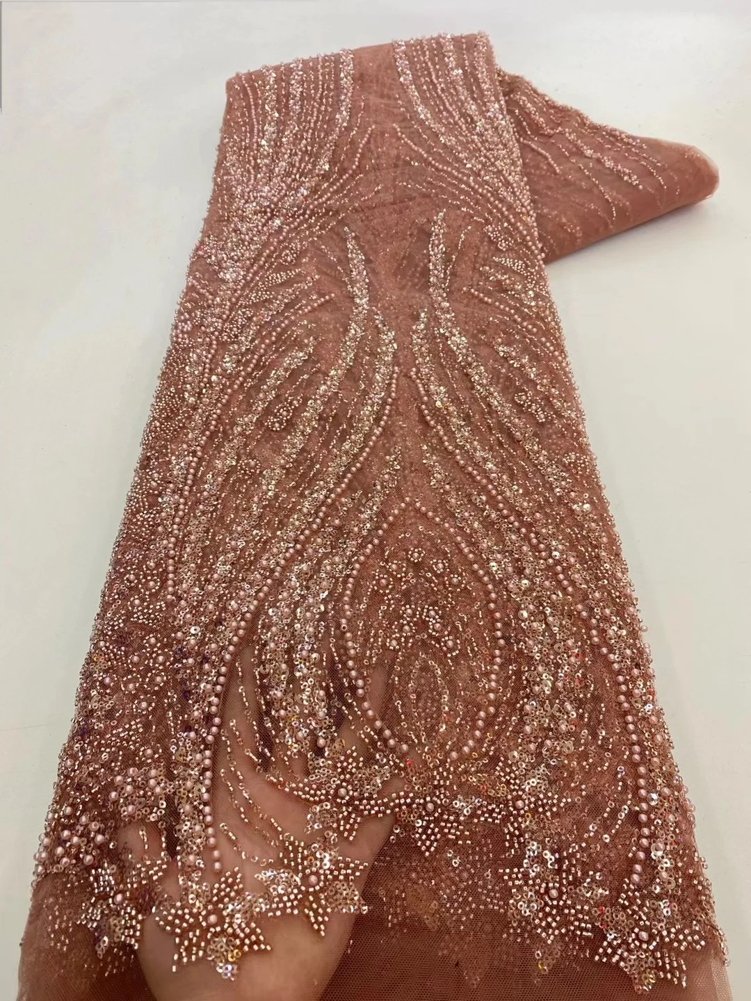 Nav Blue Sequin Luxury Beads Lace African 2025 High Quality 5 Yards Handmade Sequins Fabric Nigeria For Evening Party Wedding