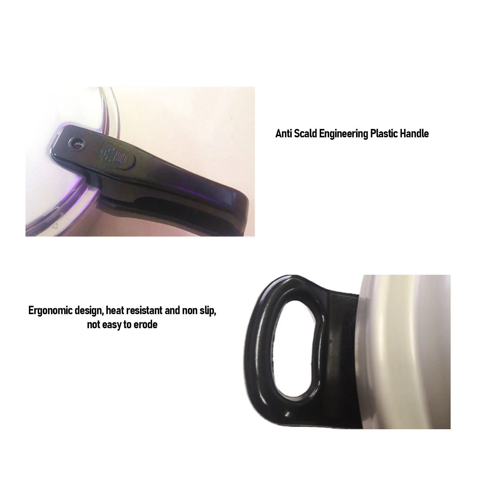 4. User Friendly Operating: Thoughtfully designed for convenience, the pressure cooker pot features an easy to use locking mechanism that simplifies the process of opening and closing. This enhances the overall user experience, ensuring that cooking is easy and accessible for everyone.