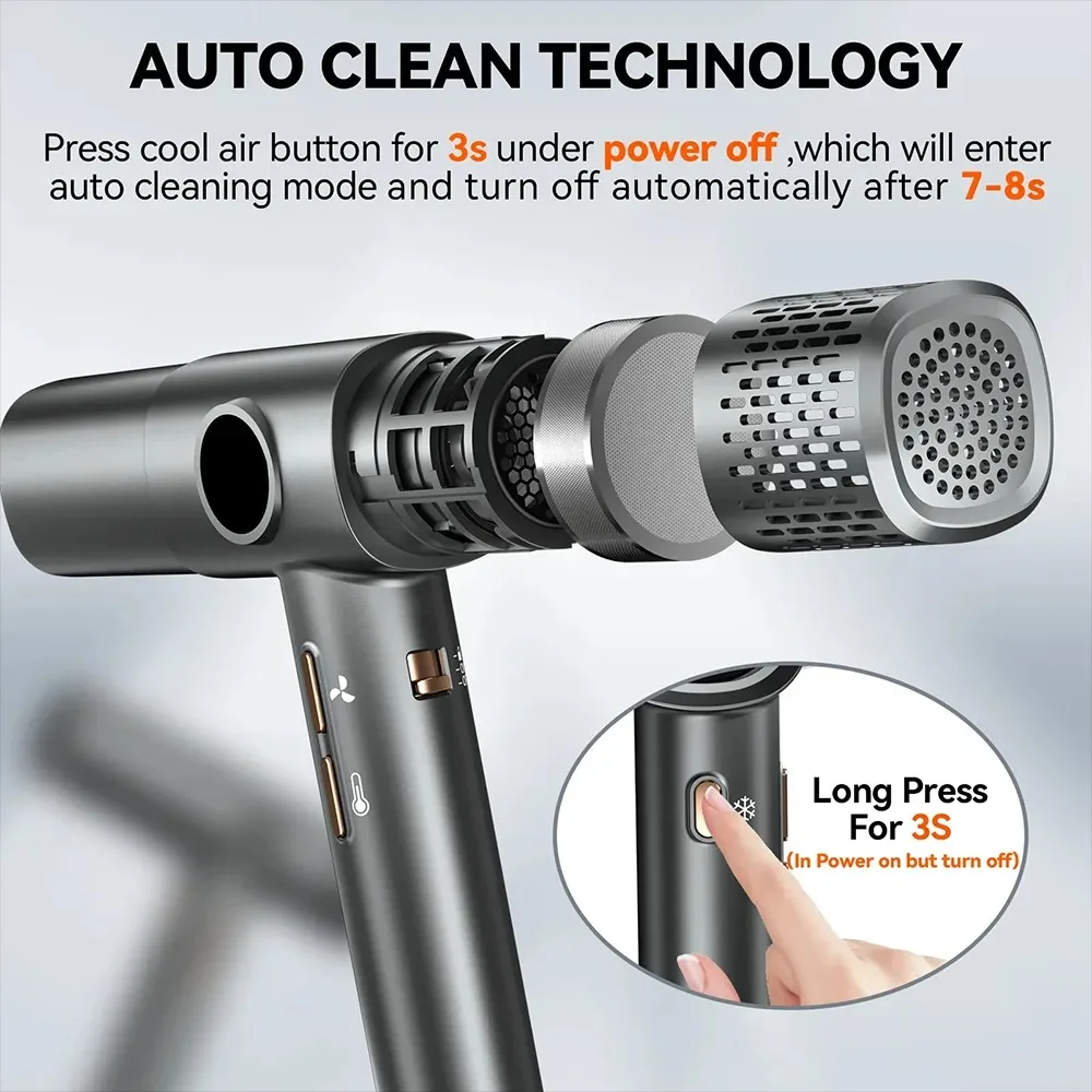 7.The hair dryer has a reverse self-cleaning function. Long press the one key cold air button to activate this function.