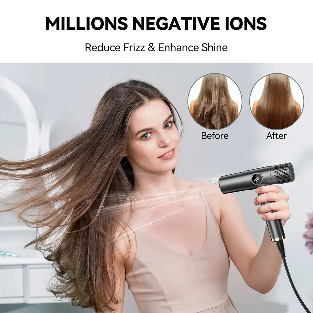 - Professional 110000RPM High-Speed Hair Dryer Brushless Motor Negative Ionic Blow Dryer Fast Drying Low Noise with LCD Display