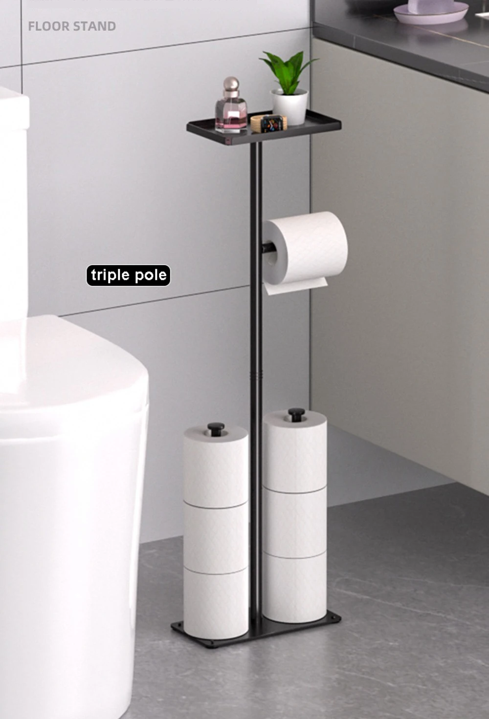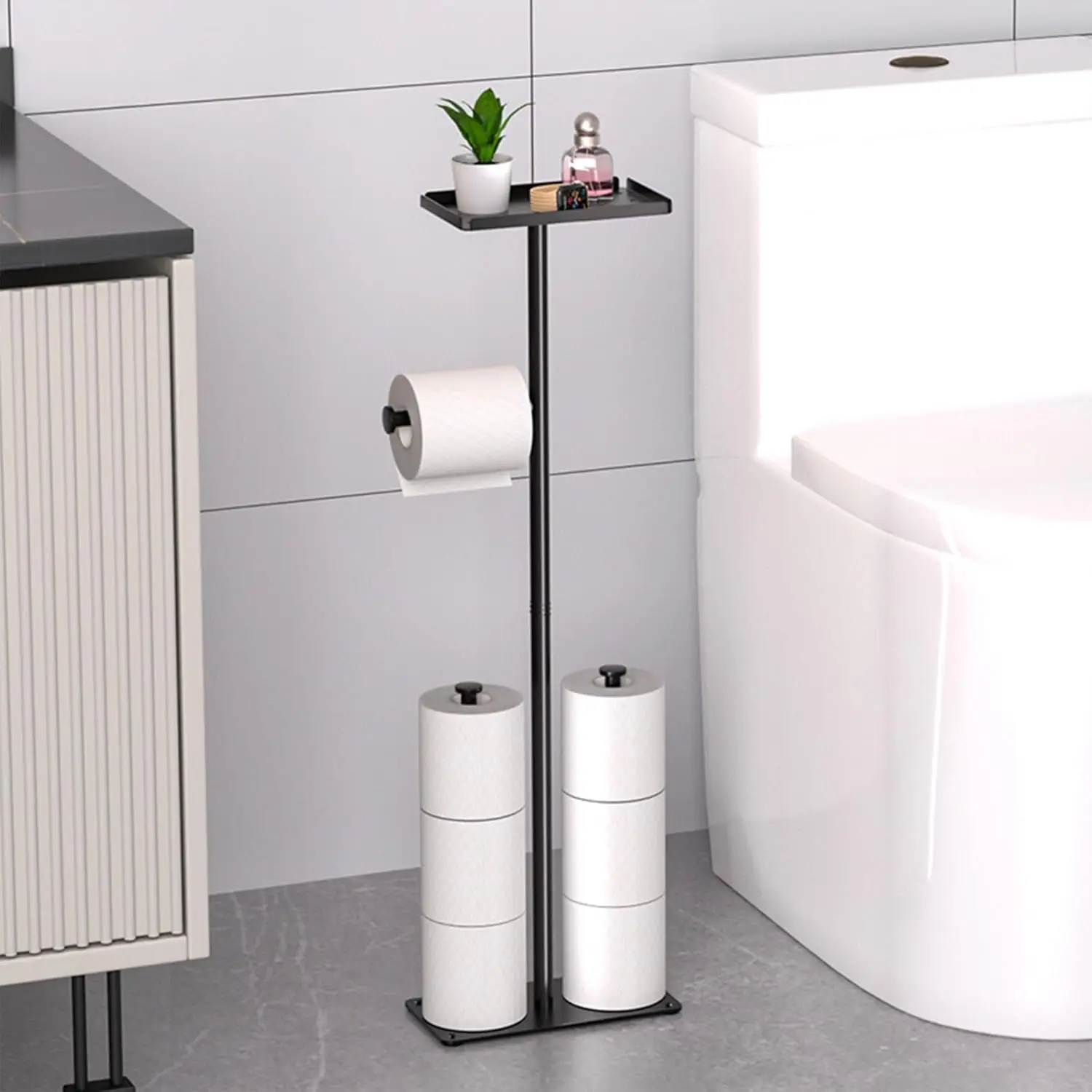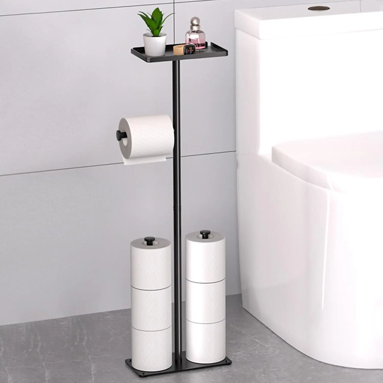 - Toilet Tissue Roll Paper Holder Free Standing For Bathroom With storage Tray