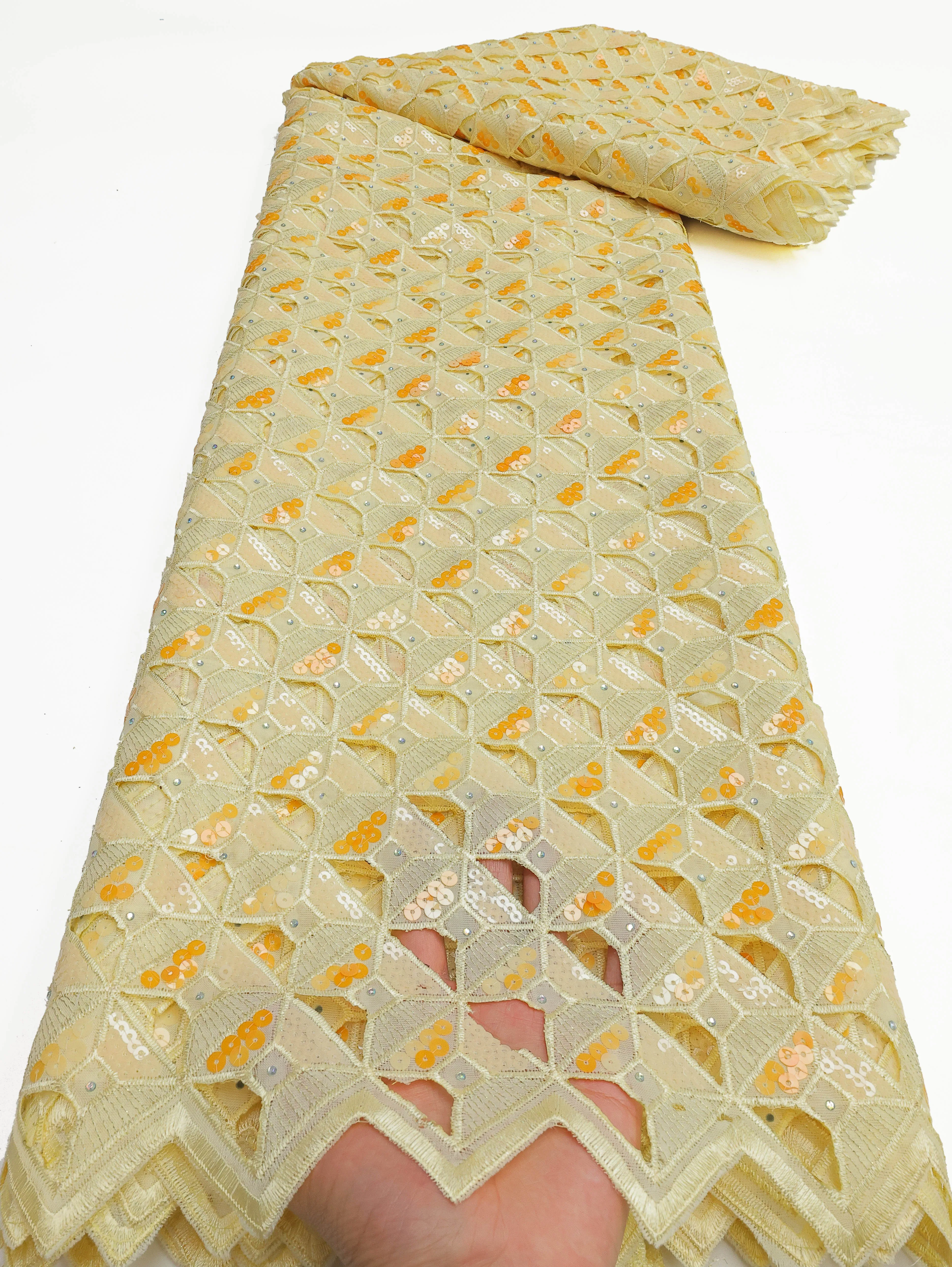 Wholesale Handcut lace fabric African organza lace with lots of sequins high quality and exclusive for wedding big occasion