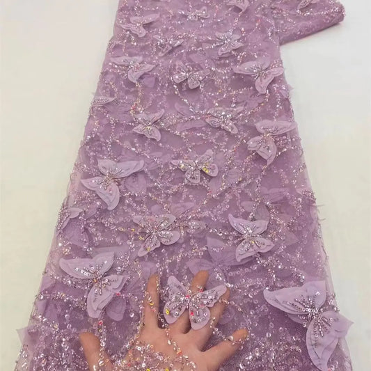 African Heavy Beaded Lace Fabric 2025 High Quality 5 Yards Nigerian Sequins Tulle 3D Fabric Material For Wedding