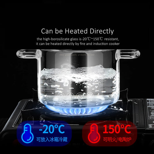 GEDO Transparent Glass Stewing Pot 1300ml and 1800ml Capacity Stockpot with Side Handle and Cover Luxury Kitchen Cookware