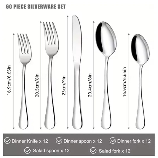 60Pcs Silverware Set Service for 12 Stainless Steel Flatware Cutlery Set Mirror Polished Flatware Set Include Forks Spoons Knive