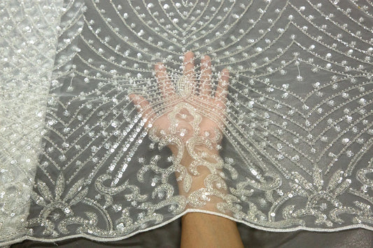 French Beaded Sequins Lace Fabric 2024 High Quality 5 Yard Mesh Tulle African Lace Fabric Nigerian Wedding Dress for Women A3736