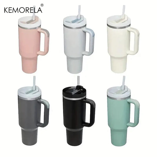 KEMORELA Tumbler With Handle Lid Straw Stainless Steel Water Bottle 887/1182ML Vacuum Thermos Cup Travel Car Coffee Mug