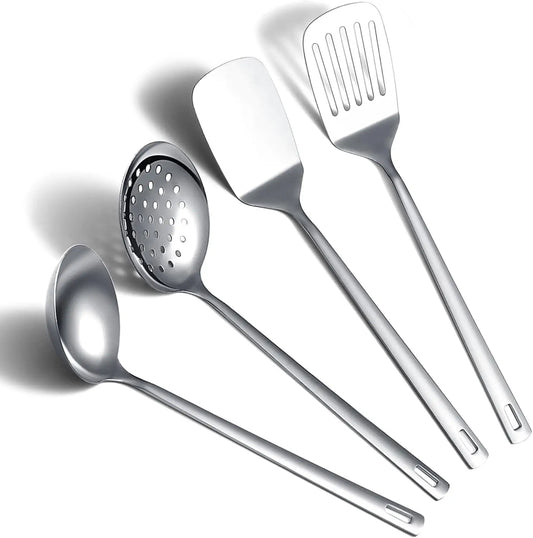 6pcs Stainless Steel Kitchenware Set Public Spoon Spatula Soup Spoon Colander Large Spoon Suitable for Restaurants and Families