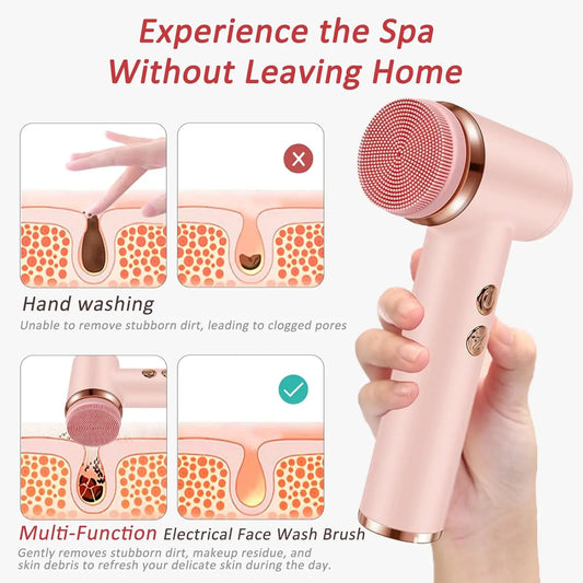 4 in 1 Facial Cleansing Brush Electric Face Wash Brush Waterproof Portable Face Scrubber for Exfoliating Blackhead Massaging