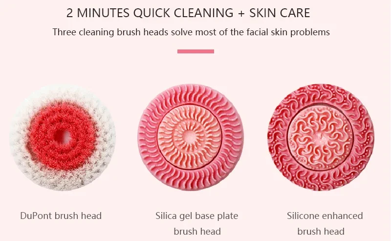 2. Facial cleanser with 3 replacement brushes, suitable for different skin types. (Normal skin, dry skin, oily skin and combination skin), silicone brush head is designed for sensitive and thin skin, soft and comfortable. Soft brush deep cleaning brush cleans pores and removes dead skin