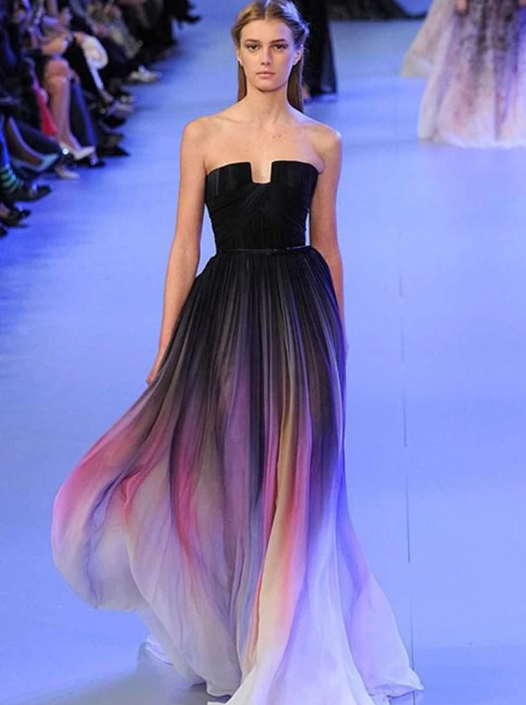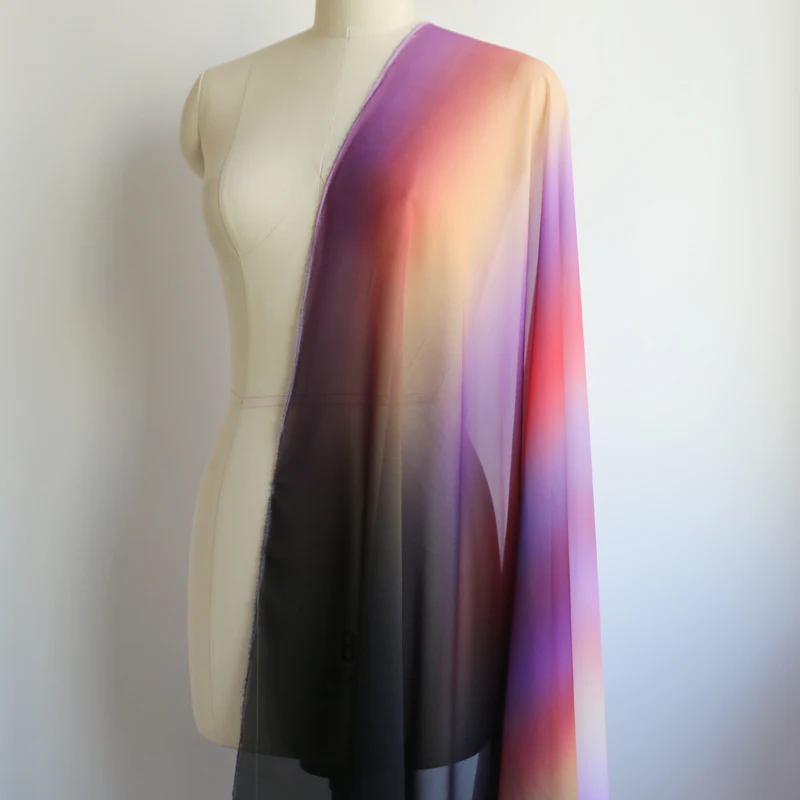 1)Material:100D Polyester Chiffon Fabric,58" Wide,Drape,Versatile,Colored Rainbow Ombre Pattern