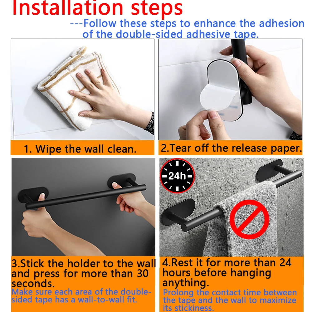 【RUSTPROOF】This towel bar set were made of SUS304 Stainless Steel,Rustproof and Anticorrosion.