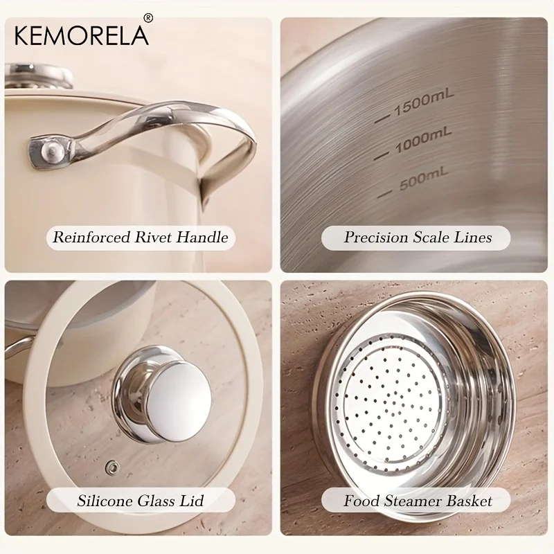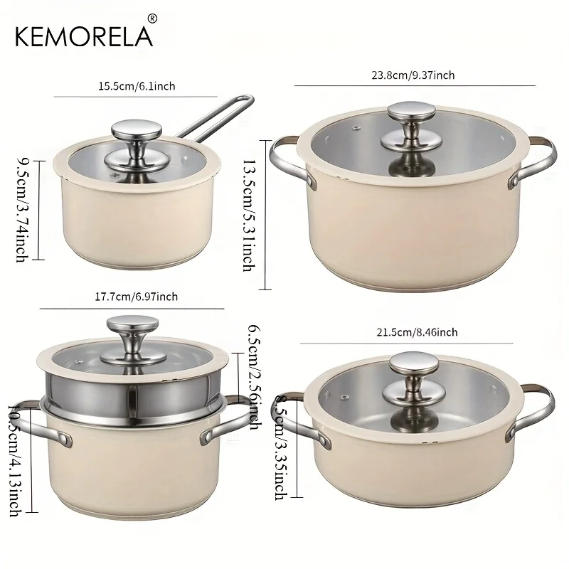 4PCS Stainless Steel Cookware Set with Glass Lid 15.5/17.7/21.5/23.8cm for Dining Room Cooking Soup Hot Pot Gas Stoves