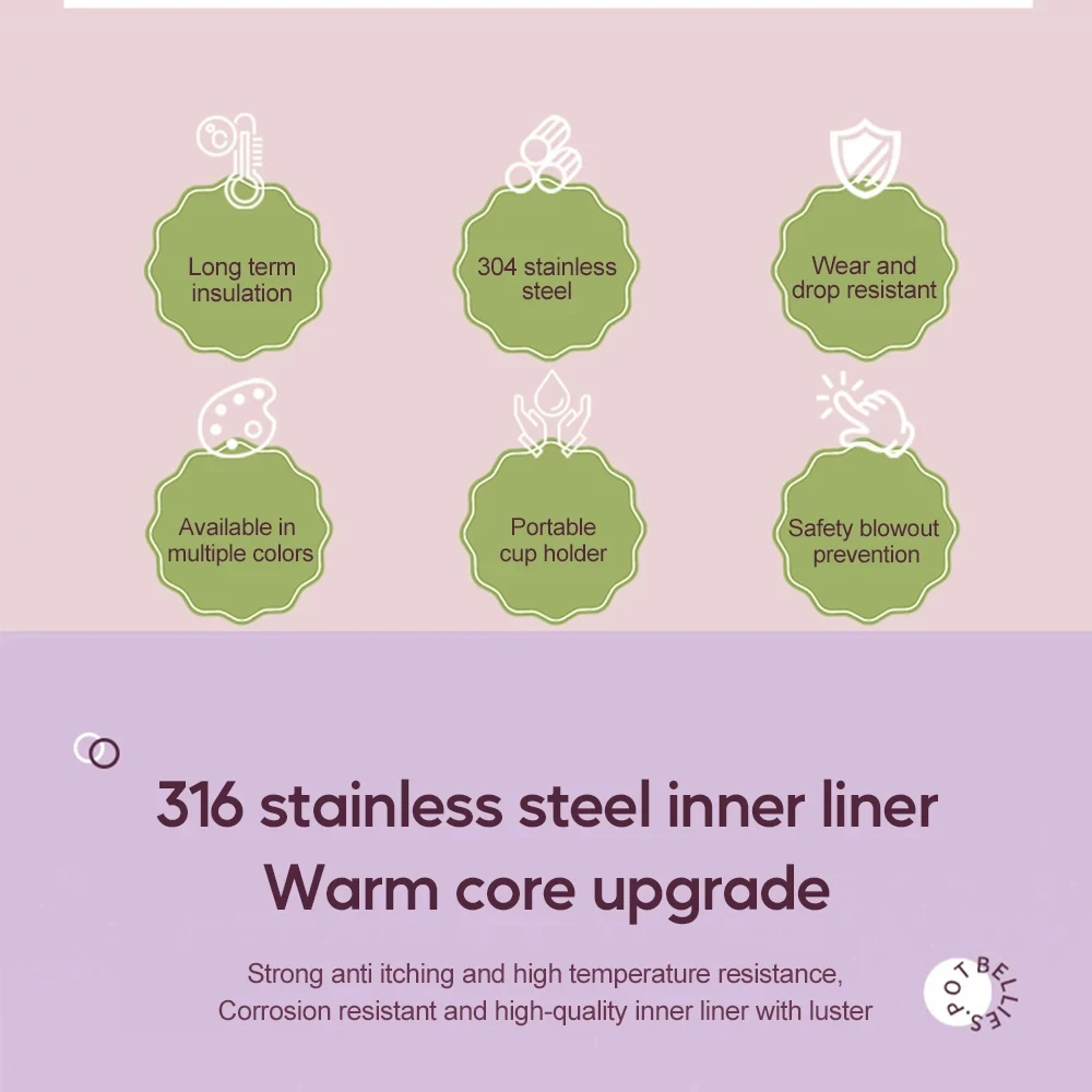- Stainless steel liner, drinking water more healthy. Food-grade silicone nozzle, safe, bite resistant.