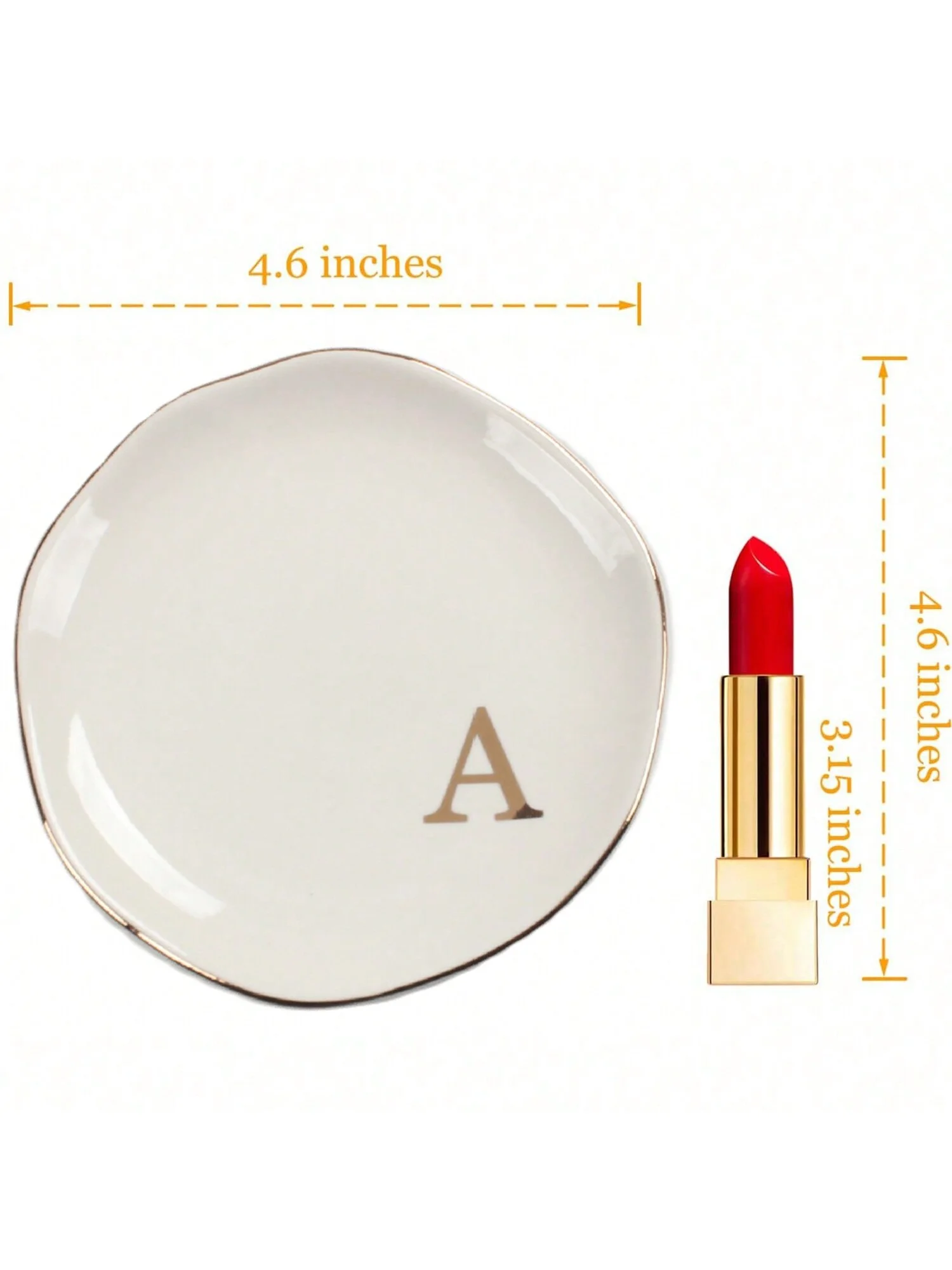 Crafted from great quality glazed ceramic with irregular round shape ring dish and gold trim,Well packed with white box.
