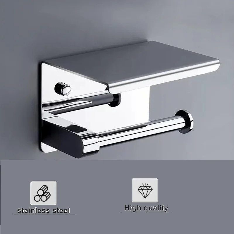 Material】Our adhesive toilet paper holder is made of stainless steel, which is anti-corrosion and